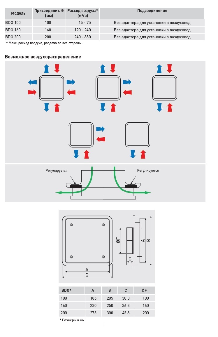 Модели BDO 100, 160 и 200 поставляются с регулятором, расположенным в канале.