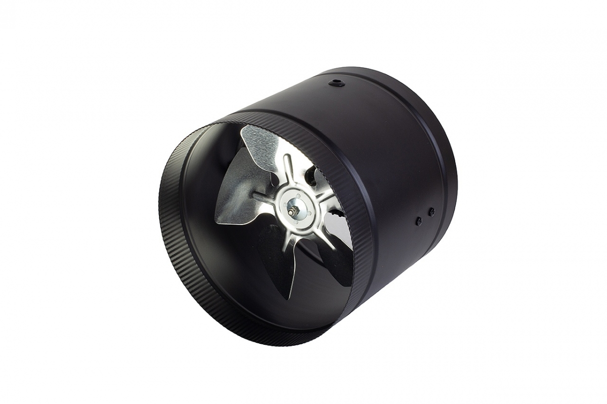 Конструкция: Корпус и крыльчатки вентиляторов выполнены из алюминиевого сплава. Рифленый на обоих торцах корпус позволяет упростить монтаж в уже существующий вентиляционный канал.