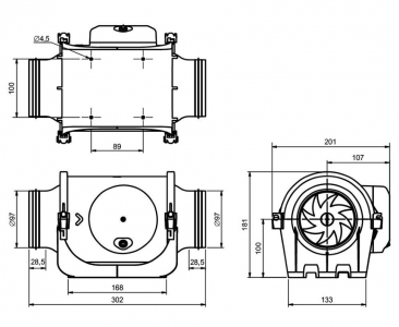 Вентиляторы изготавливаются из прочного высококачественного пластика. Уникальная конструкция корпуса и монтажного кронштейна позволяет производить обслуживание вентилятора без демонтажа воздуховодов. Воздухонепроницаемость прилегания центральной части вентилятора и монтажного кронштейна обеспечивают литые резиновые уплотнители.