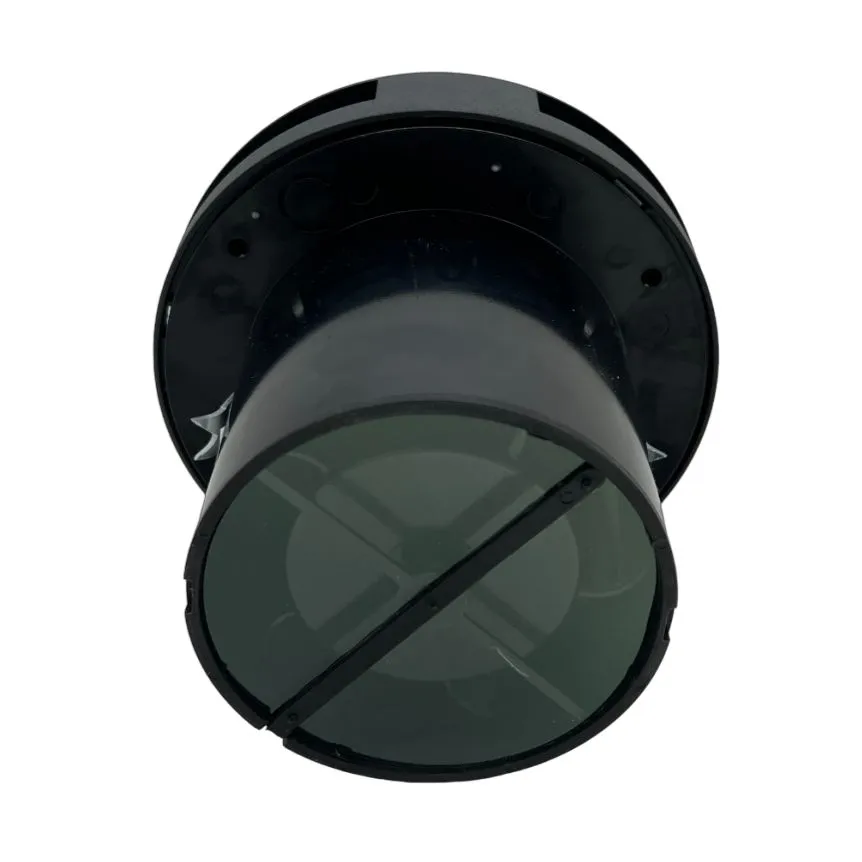 Вытяжной вентилятор VENTFAN Soler100HT - это стильный вентилятор с пластиковой круглой черной матовой панелью, с креплением без сверления и с обратным клапаном.