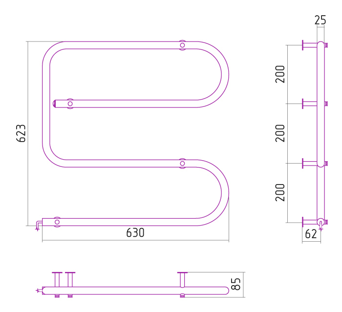 Полотенцесушитель электрический Стилье ЭПС "GS" 600x650 (64 Вт)