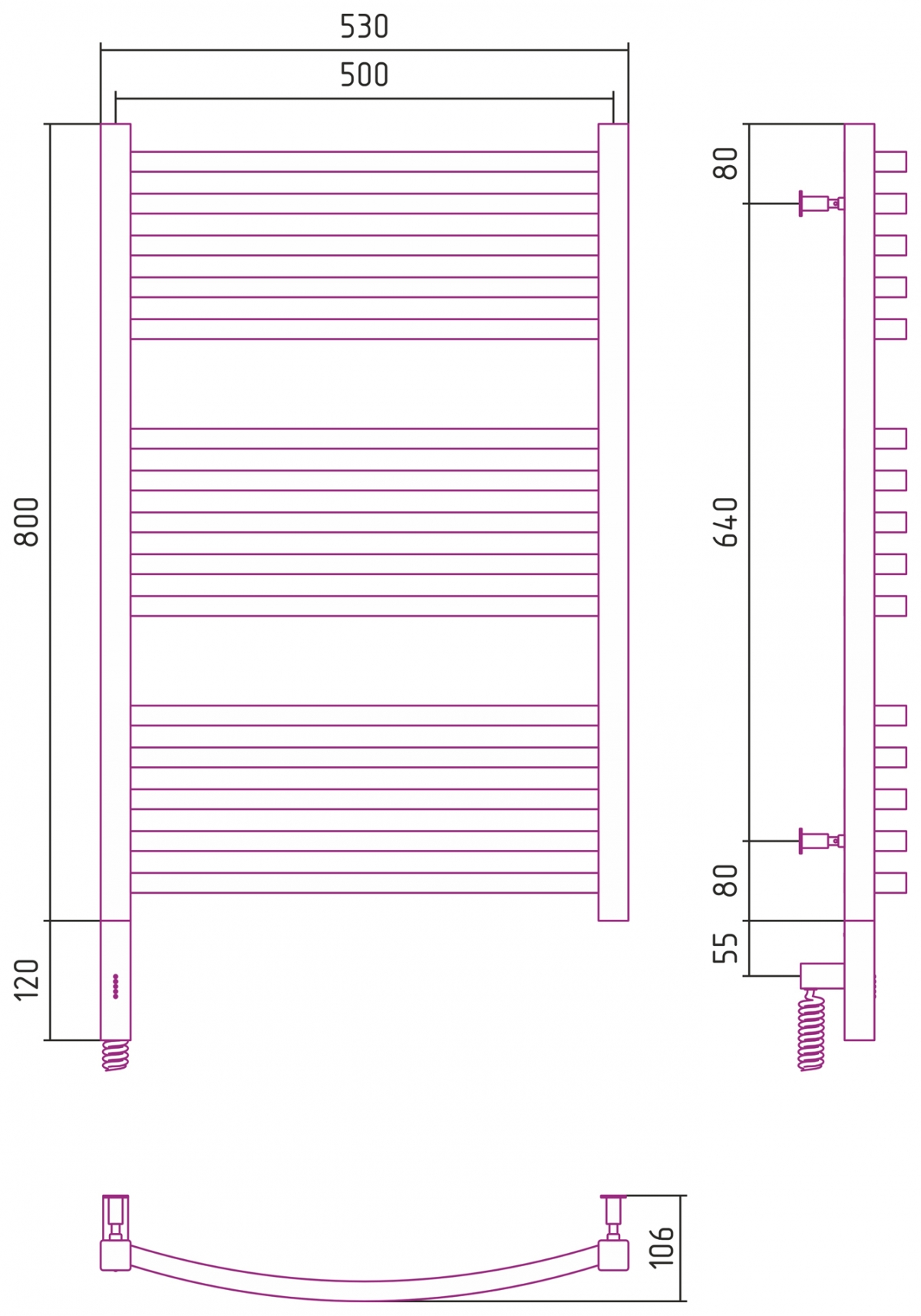 Полотенцесушитель электрический Сунержа Аркус 3.0 800x500
