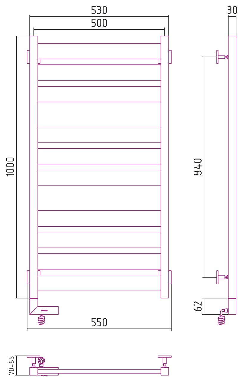 Внешние габариты (высота х ширина х глубина)(мм) : 1062x550x70-85
