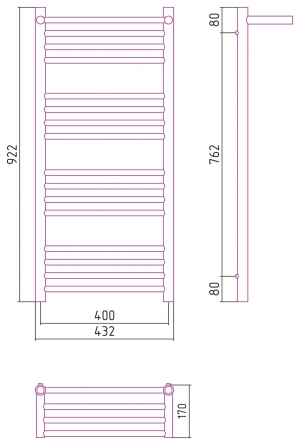 Тип:Богема с 1 полкой, Полотенцесушитель