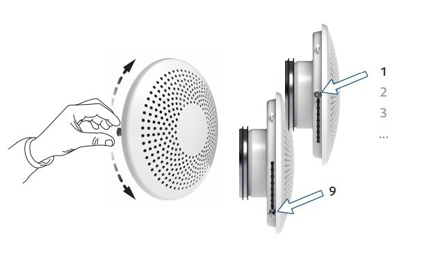 • Диффузор оснащен специальным регулирующим механизмом притока воздуха - такой переключатель (расположен сбоку) может легко перемещаться и регулировать тем самым количество приточного воздуха.