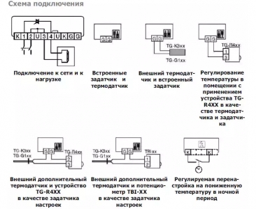 • Возможно подключение внешнего термодатчика и внешнего задатчика.