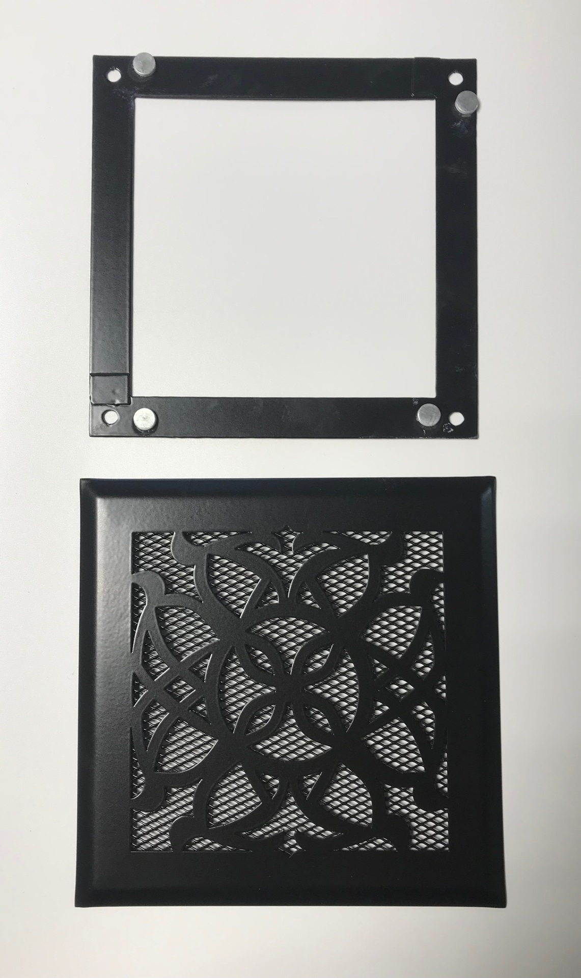 Решетка  РП-200 состоит из двух частей: монтажной рамки  (крепится саморезами или приклеивается) и самой решетки. Решетка устанавливается на рамку и держится на магнитах. Таким образом крепления получаются скрытными а снятие решетки(для очистки например) осуществляется элементарным движением и  не требует откручивания саморезов.