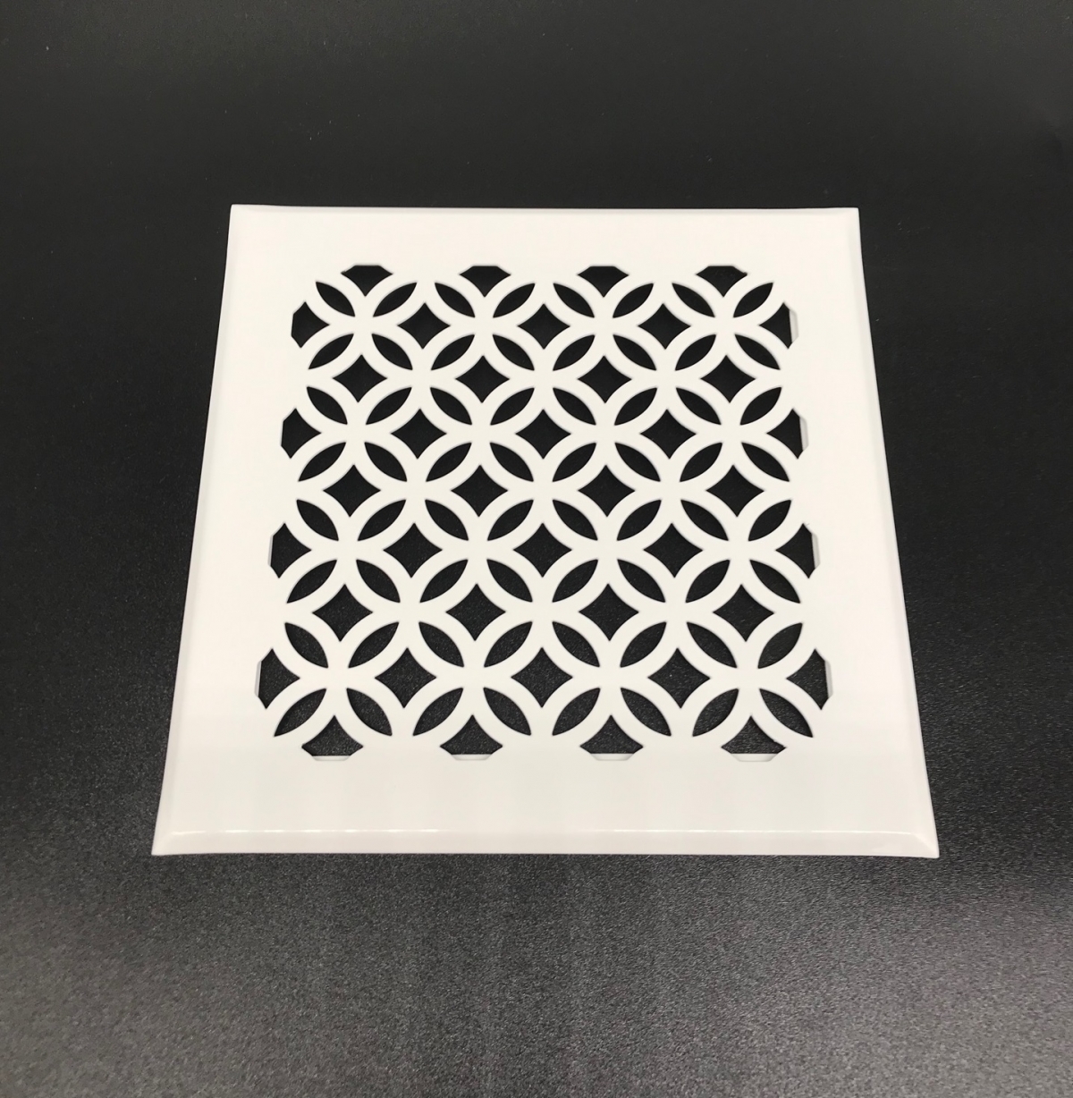 Решетка устанавливается на проем сечением 110х110мм и имеет внешний габарит 150х150мм