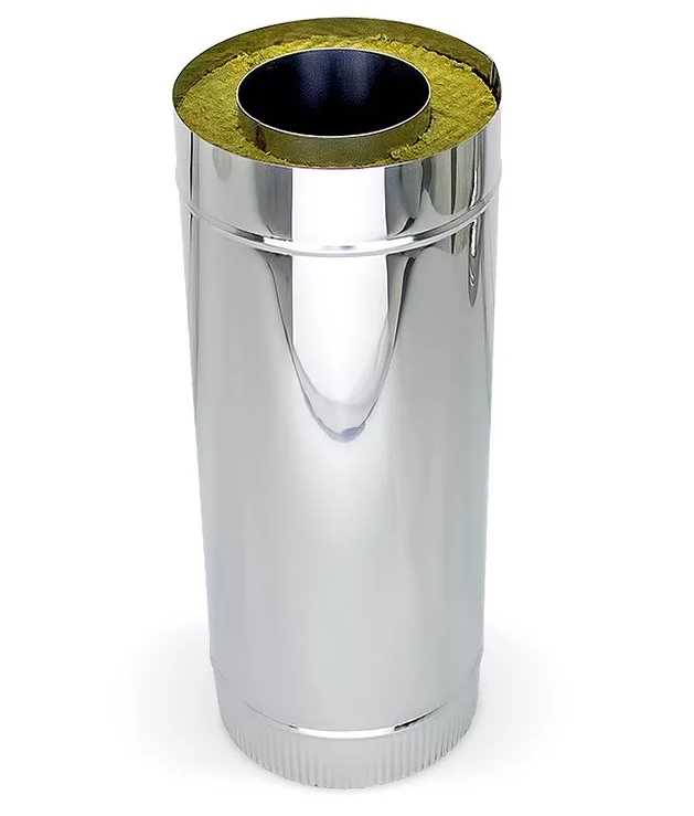 “Сэндвич”-дымоход представляет собой два жестких воздуховода и расположенную между ними негорючую теплоизолирующую прослойку - базальтовую изоляцию.