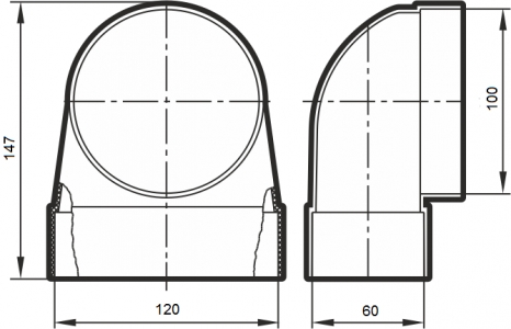 Соединитель угловой ERA 612СК10КП 120х60 d100 КП под трубу пластиковый