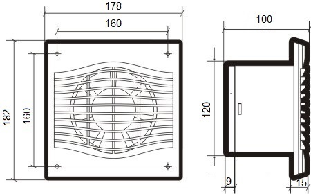 Отличаются тонкой лицевой панелью, выступающей всего на 15мм от поверхности, на которой смонтирован вентилятор;