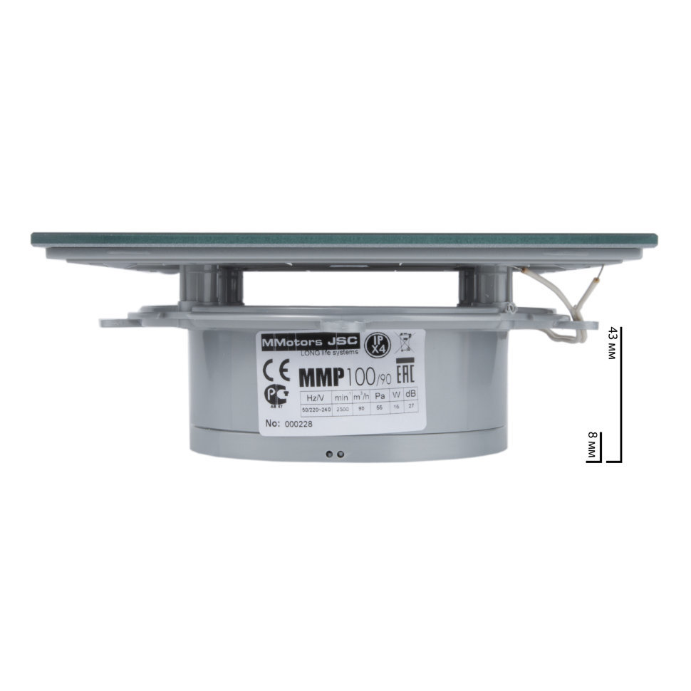 Вентилятор накладной сверхтонкий MMotors JSC MMP-06 100/90 куб/ч Стекло/Квадрат Светло Серый