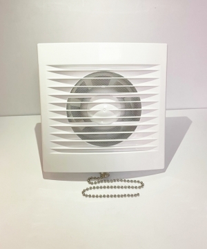 Тихий бытовой вытяжной вентилятор с москитной сеткой оборудованный шнурковым выключателем.