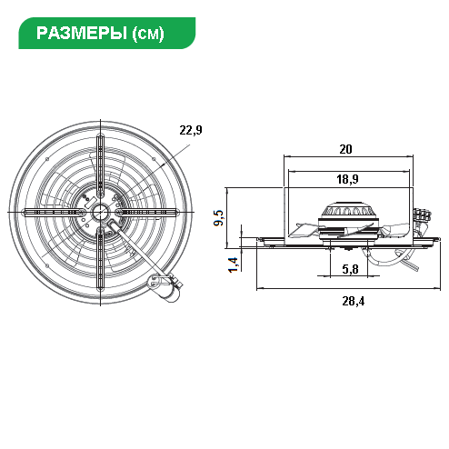 Осевой монофазный вентилятор выпускается нескольких типоразмеров и является продуктом высокотехнологичного производства. Корпус вентилятора выполнен из металла, окрашен порошковой эмалью в черный цвет. При изготовлении данного вентилятора использован внешний роторный двигатель. Оснащен съемной круглой решеткой, которая может быть легко снята для очистки и другого обслуживания. Направление потока воздуха осуществляется по направлению часовой стрелки. Скорость потока воздуха можно отрегулировать с помощью дополнительного контроллера. Дополнительно оборудован термоконтактом, что защищает двигатель от перегрева. Вентиляторы применяются для охлаждения наружных блоков кондиционеров, чиллеров, электрических панелей и различных теплообменников в жилых, производственных, офисных, торговых зданиях, ресторанах и пр. Вентилятор предназначен для эксплуатации в помещениях с температурой не более 72 С и относительной влажности до 80 %.